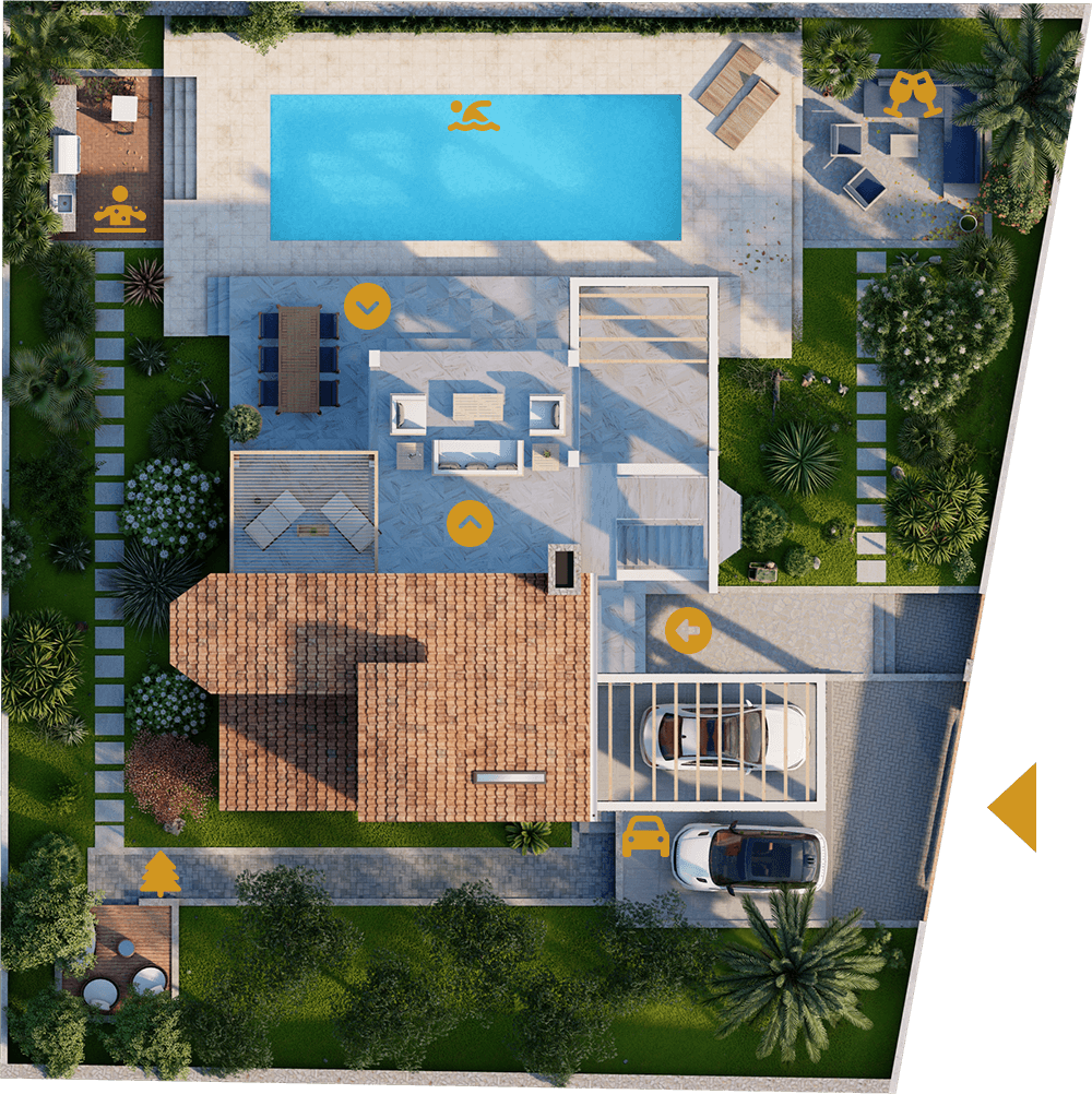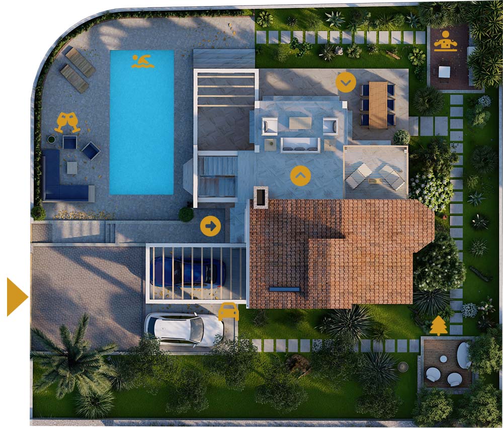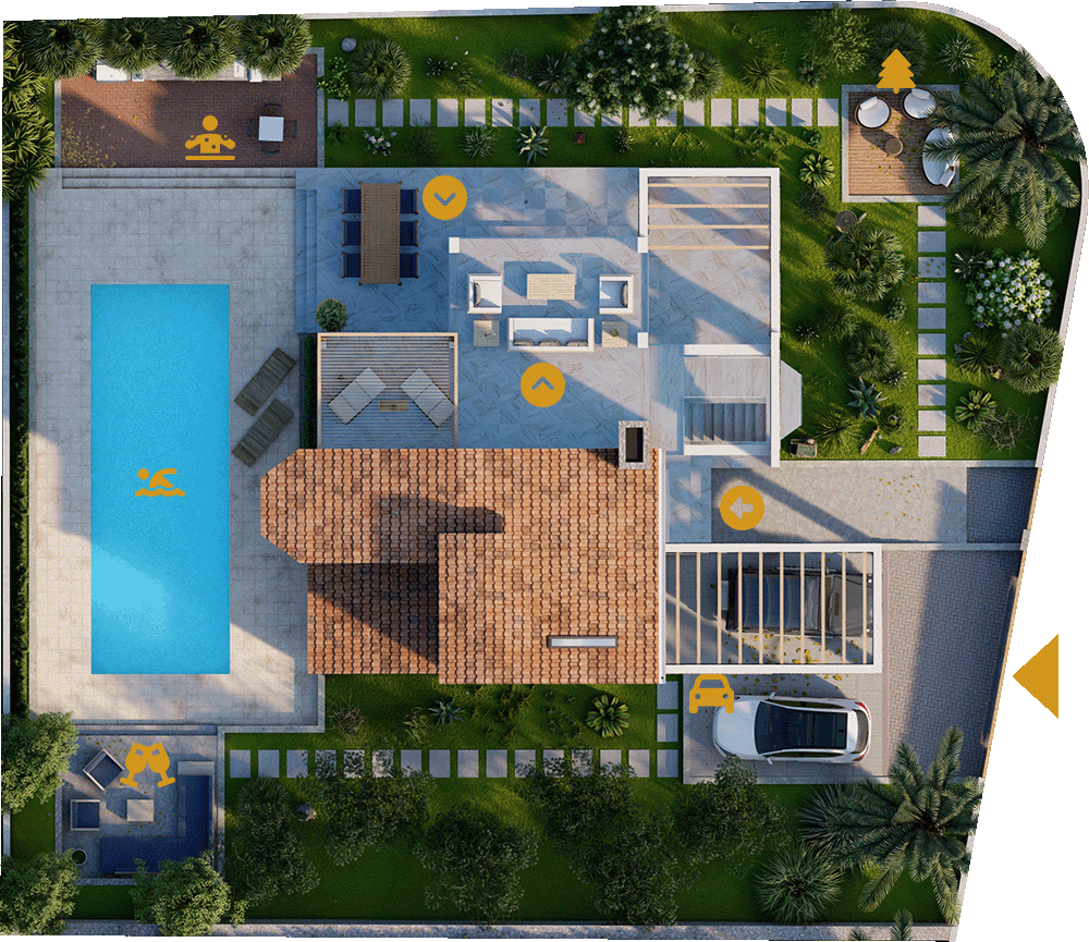 Villas are equipped with EV charging port, & eligible to be equipped with smart control panel to control lights, skimmer system, heater, AC, etc.. all from your smartphone.